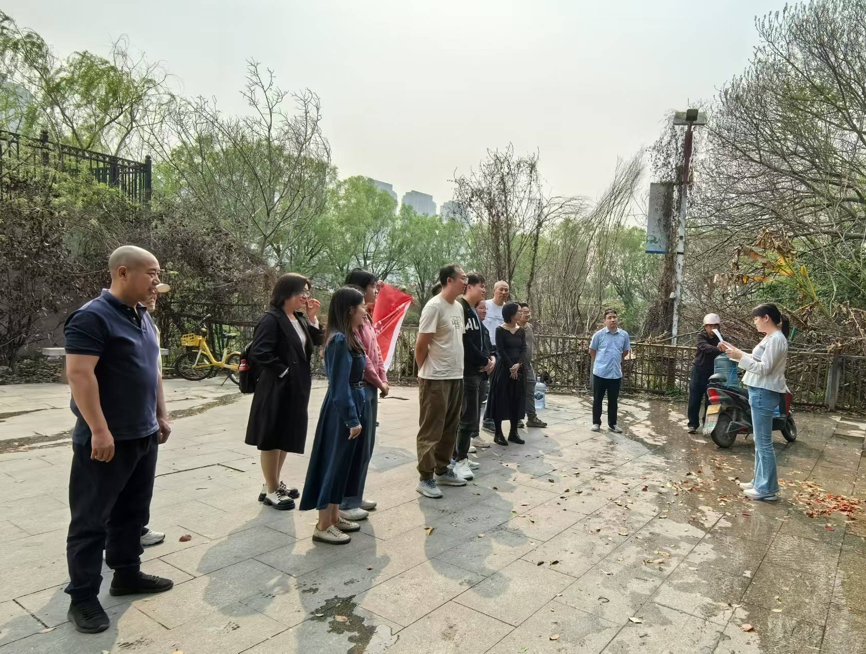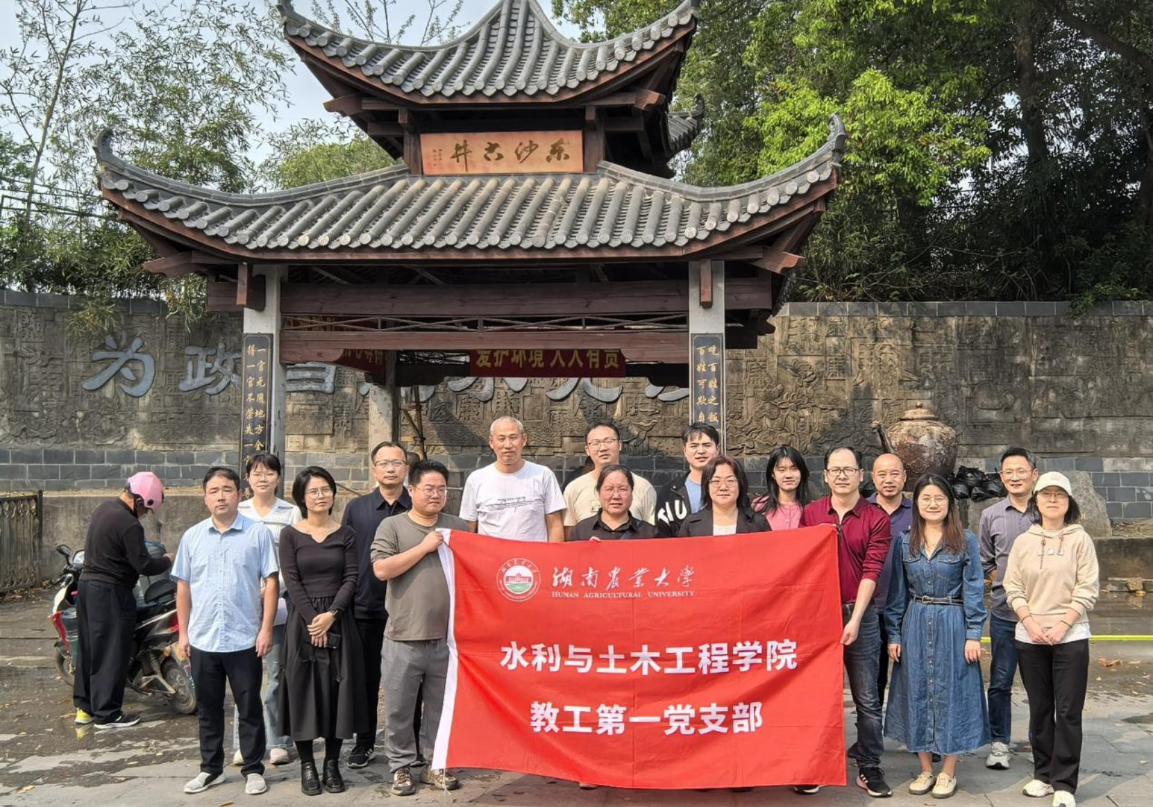 活动过程中,党员同志们参观了东湖古井,深入了解了古井的历史渊源、设计构思、选址依据、水质特点及其背后的文化故事。古井所承载的 “水润万物” 精神,生动诠释了农业文明中无私奉献的深刻内涵。与此同时,党员同志们还自发加入群众的打水队伍,给前来打水的群众做节水护水宣讲,积极践行节水护水责任担当。