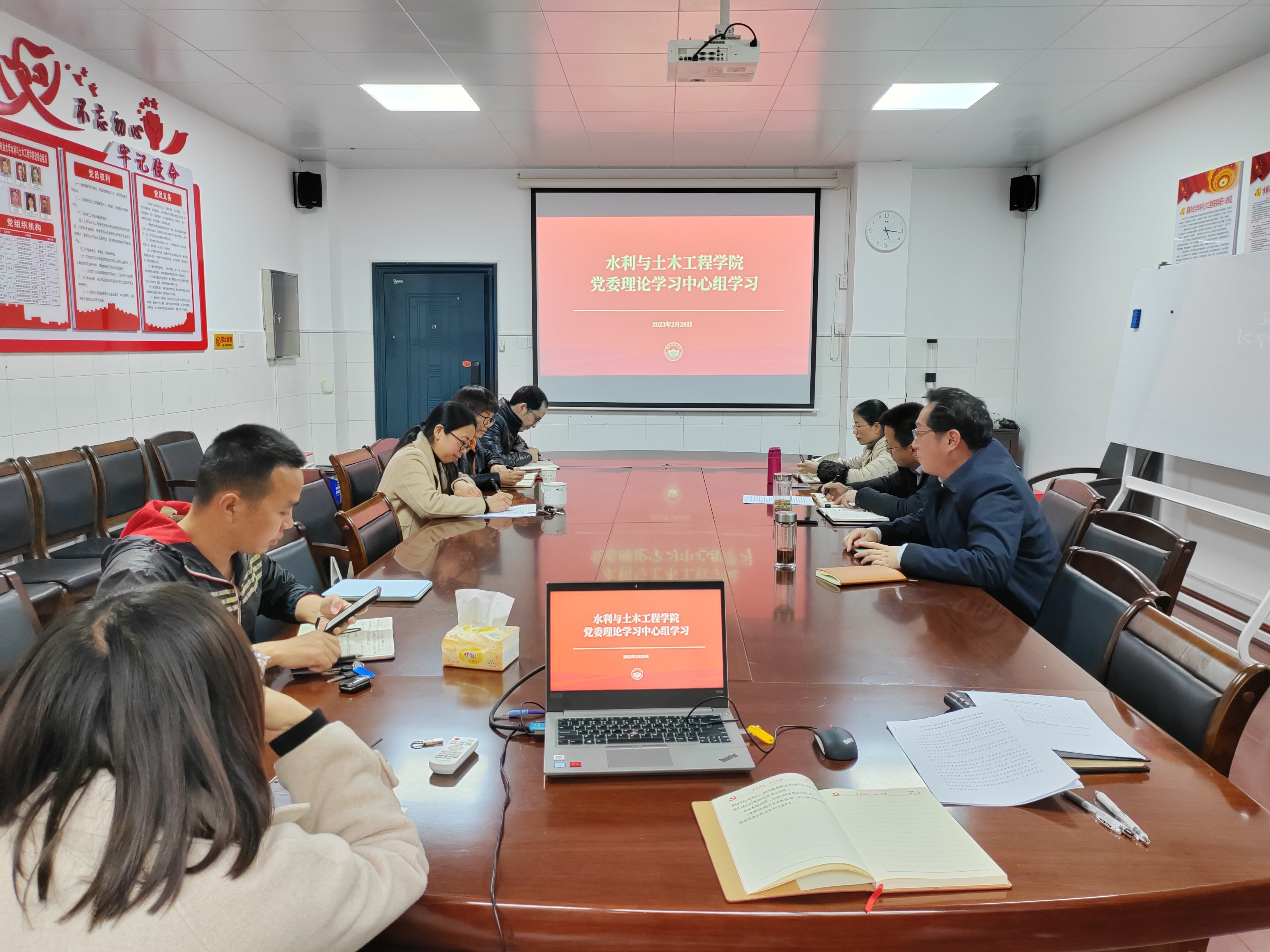 本网讯(通讯员 喻璐颖)2月28日下午,为持续深入贯彻落实党的二十大精神,共创公司改革发展新局面,公司在8教南212会议室召开党委理论学习中心组学习会议。会议由党委书记丁凯主持,公司领导班子成员、党委委员、党支部书记参加。