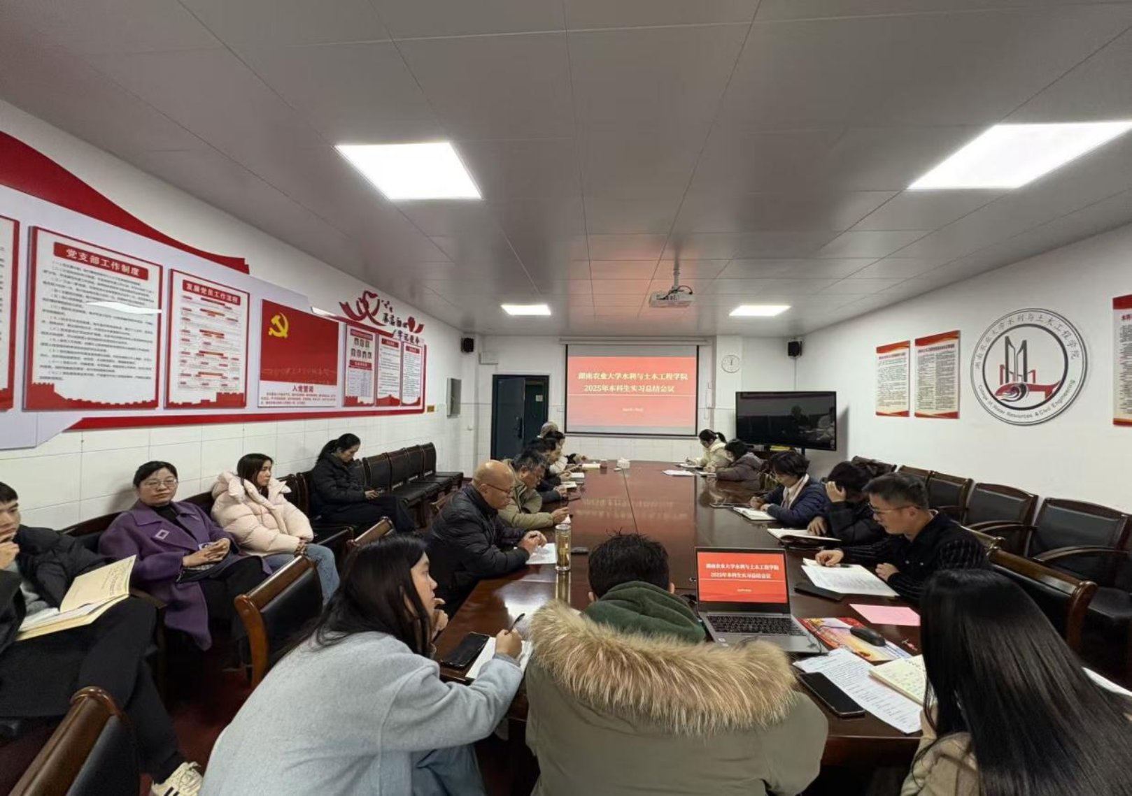会上,水利工程系主任许文彬、土木工程系主任万琳辉、工程管理系主任王玮依次汇报 2025 年度实习工作。他们围绕实习计划实施、基地建设、员工表现、教师指导等方面展开阐述,针对审核评估反馈的标准落实问题,剖析薄弱环节,提出解决方案,并结合专业认证要求分享改进设想,为公司整改提供了实践支撑。