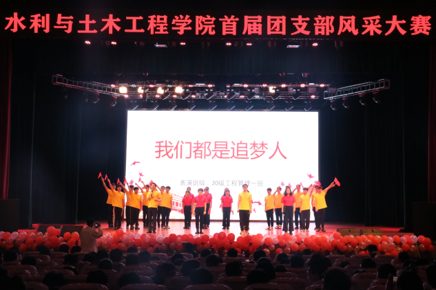 在大赛中,2019级土木工程一班表演的《重现1919》,在同学们嘹亮的呐喊声中,将观众带回风云变幻的1919年,感受当时青年学子发出的悲叹,为救亡图存拼搏的决心; 2020级土木工程二班表演的《没有共产党就没有新中国》,将嘉兴南湖红船上的故事娓娓道来,与在场观众重温开天辟地、敢为人先的首创精神; 2020级工程管理二班表演的《青春》,以“青春之思”为切入点,带领在座同学共同思考青年学子如何立身于社会,如何立身于国家,贡献青春力量;2019级水利水电工程三班带来的歌曲《不忘初心》,旨在引导当代青年学子身处新时代永葆初心,砥砺前行。