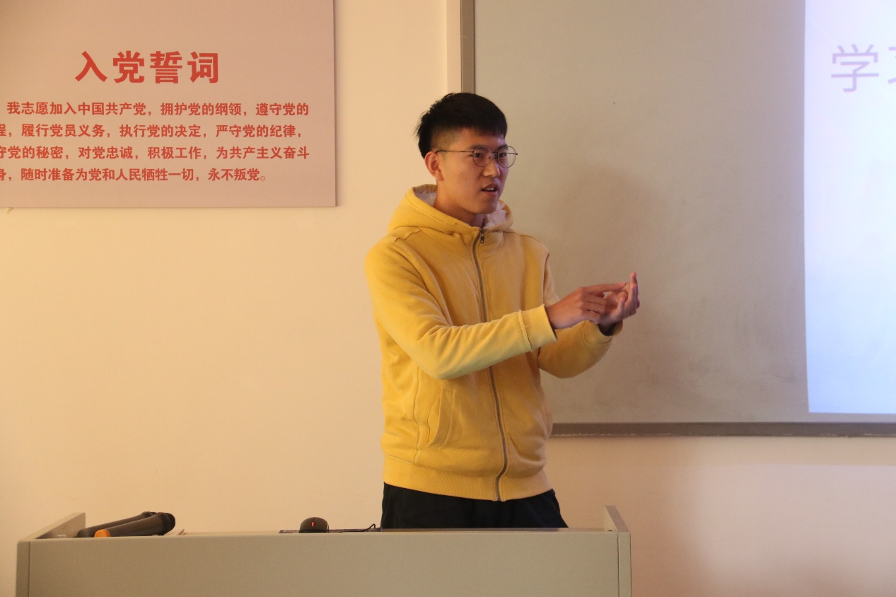 来自公司2017级水利水电工程一班的宋城业分享了自己的创业经历。他通过一段视频简要介绍了检测土壤重金属含量的方法,博得与会同学的一致赞赏。他表示,创业道路比较艰难,唯有精选方向、不懈努力,才会有成果。