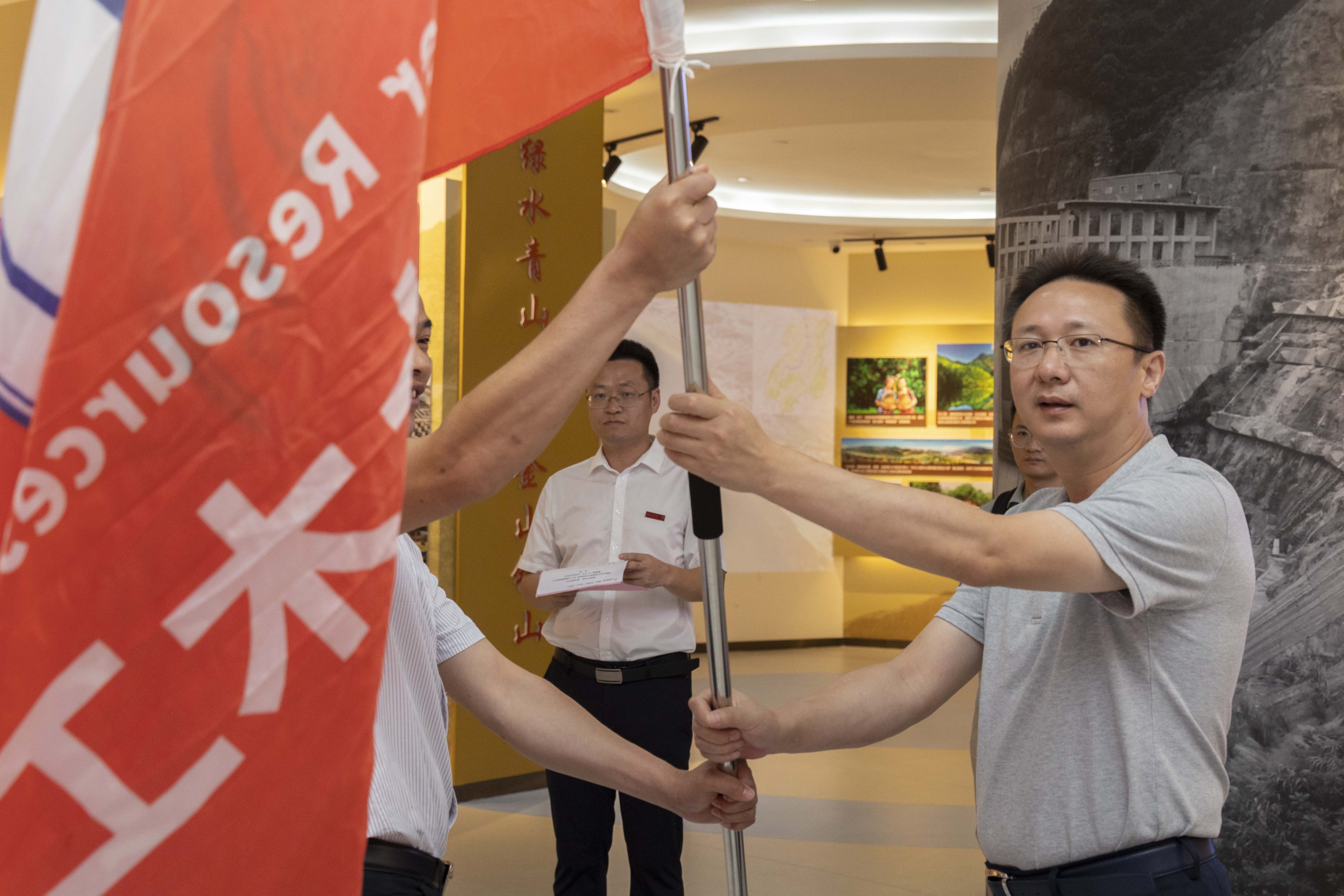 兰勇副董事长代表公司为beats365暑期“三下乡”乡村振兴实践团授旗,水利工程系主任吴友杰副教授作为教师代表接旗。