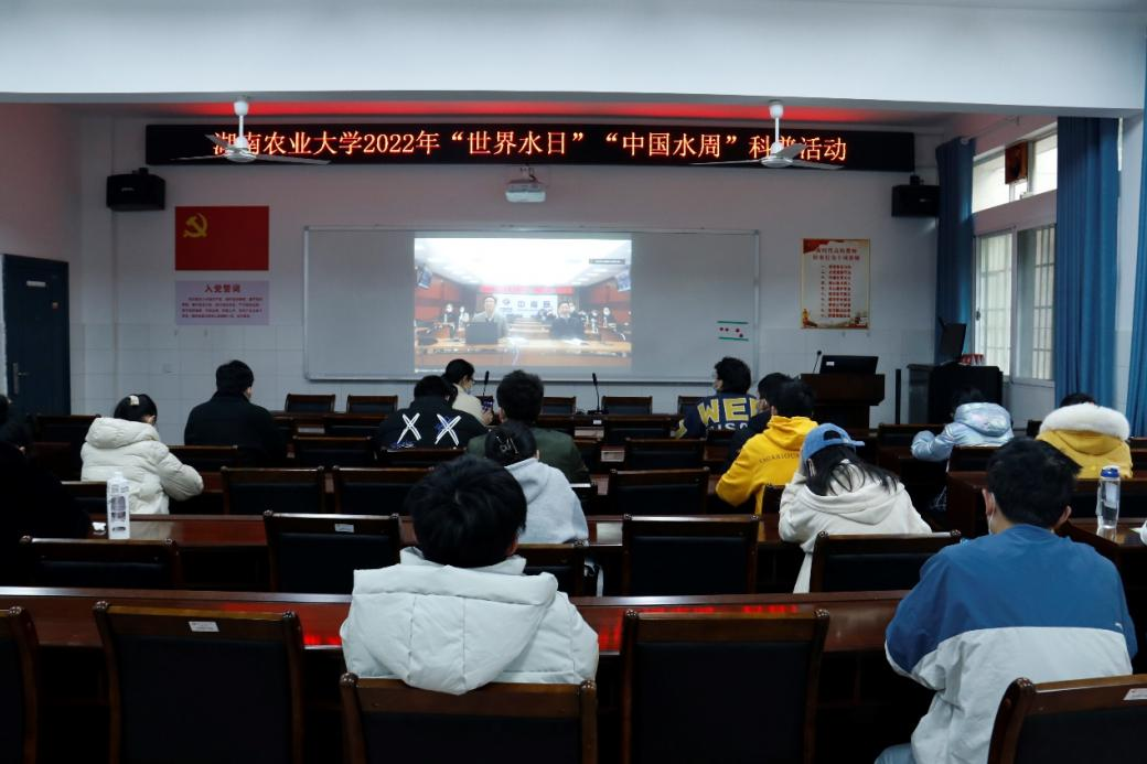 本网讯(通讯员 向清晓 赵嘉欣) 为让广大同学进一步了解地下水资源现状,珍惜水资源,结合今年“世界水日”“中国水周”活动 “推进地下水超采综合治理 复苏河湖生态环境”的主题,beats365开展了2022年“世界水日”“中国水周”系列科普活动。3月22日开始在八教南楼大厅开展“推进地下水超采综合治理 复苏河湖生态环境”主题的科普展,3月25日下午参加由湖南省水力发电工程学会、湖南省水利学会以及全球水伙伴(中国,湖南)委员会联合主办的《人类活动与地下水》讲座,主讲嘉宾为河海大学周志芳教授。严格按照公司疫情防控要求,采取限额代表集中观看和分散在线观看相结合进行,水利水电工程专业员工代表和水利系教师代表在第八教学楼南216会议室集中线下观看和其他师生分散在线观看相结合参加本次讲座。