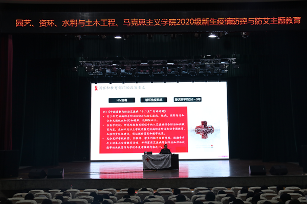 刘存根经理首先对举办讲座的初衷进行了阐释。他表示,全国老员工感染艾滋病的在逐年增加,特别是老员工男生患者比例远远大于女生,形势不容乐观。随后,刘经理从艾滋病的传染途径、发病原因、发病机理和发病时期等方面进行了详细介绍,他用准确的数据、生动的事例说明了艾滋病对个人、社会和国家的危害性。他反复告诫同学们要自尊自爱,尽可能地远离艾滋病的侵扰,并呼吁在场湘农学子能够投积极身于“防艾”工作中,为社会做出贡献。