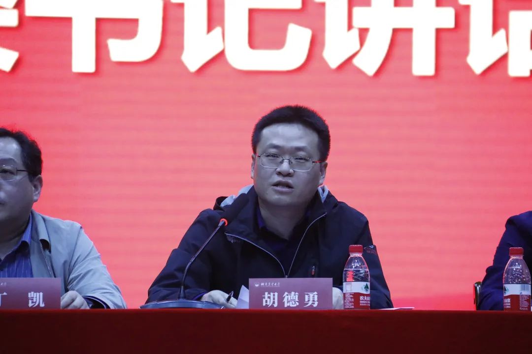 最后,党委书记胡德勇指出同学们要持续加强学风建设,并对水土学子提出三个要求:明确自身责任使命;正确认识所处时代;拿出行动迎接时代。他还表示湘农青年站在“两个一百年”的历史交汇点、脱贫攻坚与乡村振兴有效衔接的新起点上,要始终以强农兴农为己任,自觉传承湖湘红色基因,在推进农业农村现代化的征程上勇当开路先锋、争做事业闯将,无愧于“青春向党、不负人民”、“复兴栋梁、强国先锋”的青春誓言。