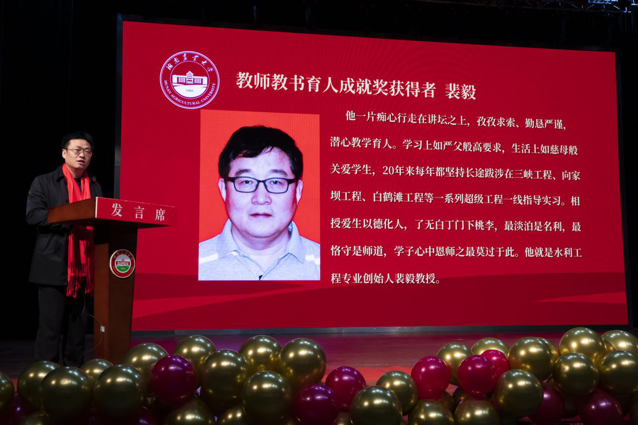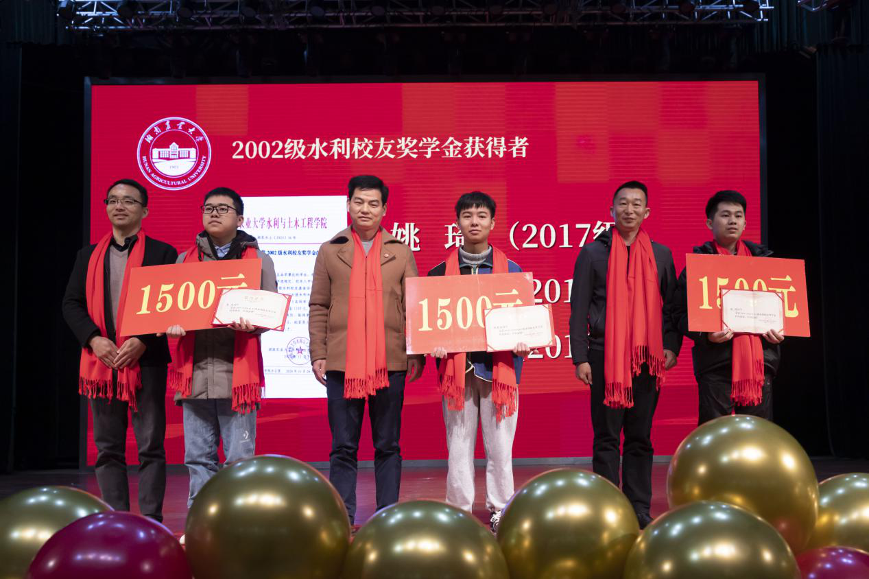在捐赠仪式上,1999级水利员工为裴毅、姚帮松两位退休教师颁发了教师教学育人成就奖,2002水利员工为姚琦等3位员工颁发了员工奖学金,2001级水利员工为公司建设和发展捐赠了10万元人民币。