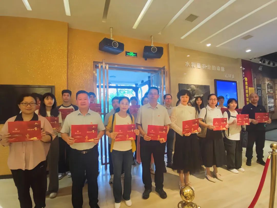 在韶山灌区陈列馆,全体党员跟随讲解员的脚步,通过详实的图片、实景沙盘及观看韶山灌区宣传片等形式,重温了韶山灌区的建设历史,深刻感受了当年灌区建设的艰苦过程和群众万众一心、热火朝天建设灌区的激情岁月,韶山灌区建设过程中涌现的韶灌精神让在场的每一位党员动容。