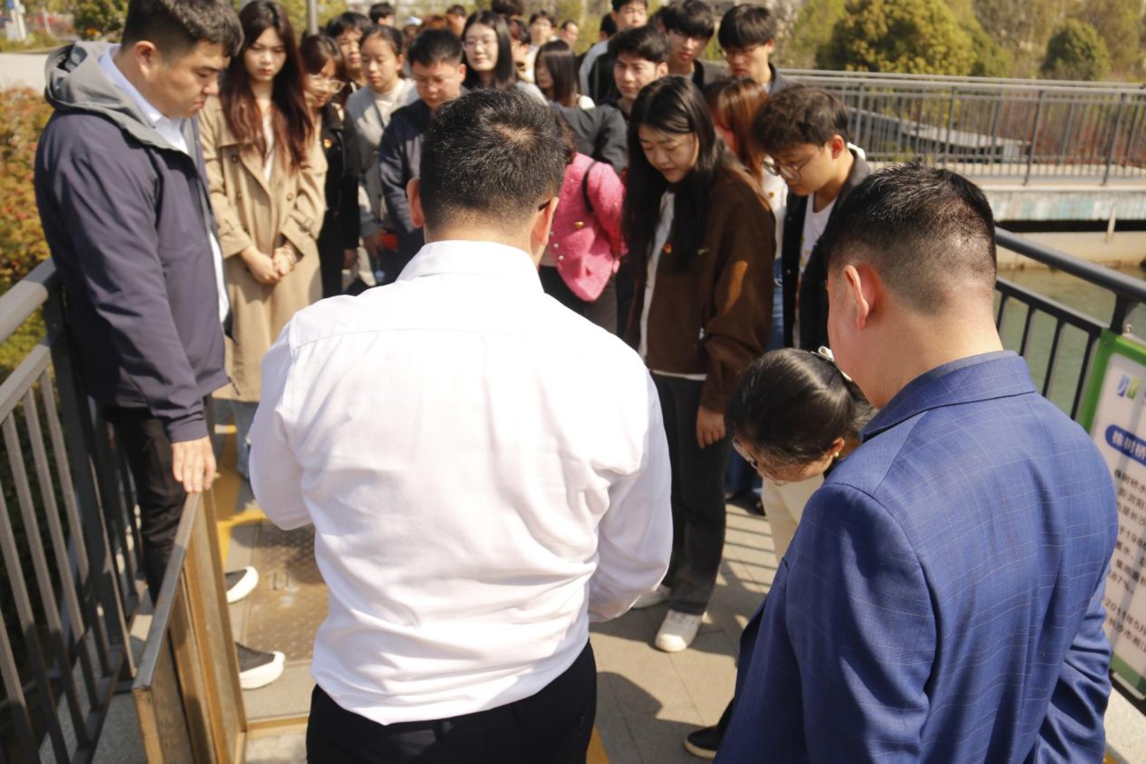 在湖南才饮长沙水有限公司智慧水务指挥中心,企业技术团队通过三维可视化平台,动态展示了智能调度系统、管网漏损监测等智慧水务应用场景。双方围绕“科技如何助力水资源高效利用”、“物联网 + 节水”技术创新等话题展开深入研讨。公司党委书记唐琳表示:将科研成果转化为节水实践,是高校与企业的共同使命,我们要以此次活动为契机,深化交流合作,为培养兼具专业素养与创新能力的新时代水利人才而不懈奋斗。