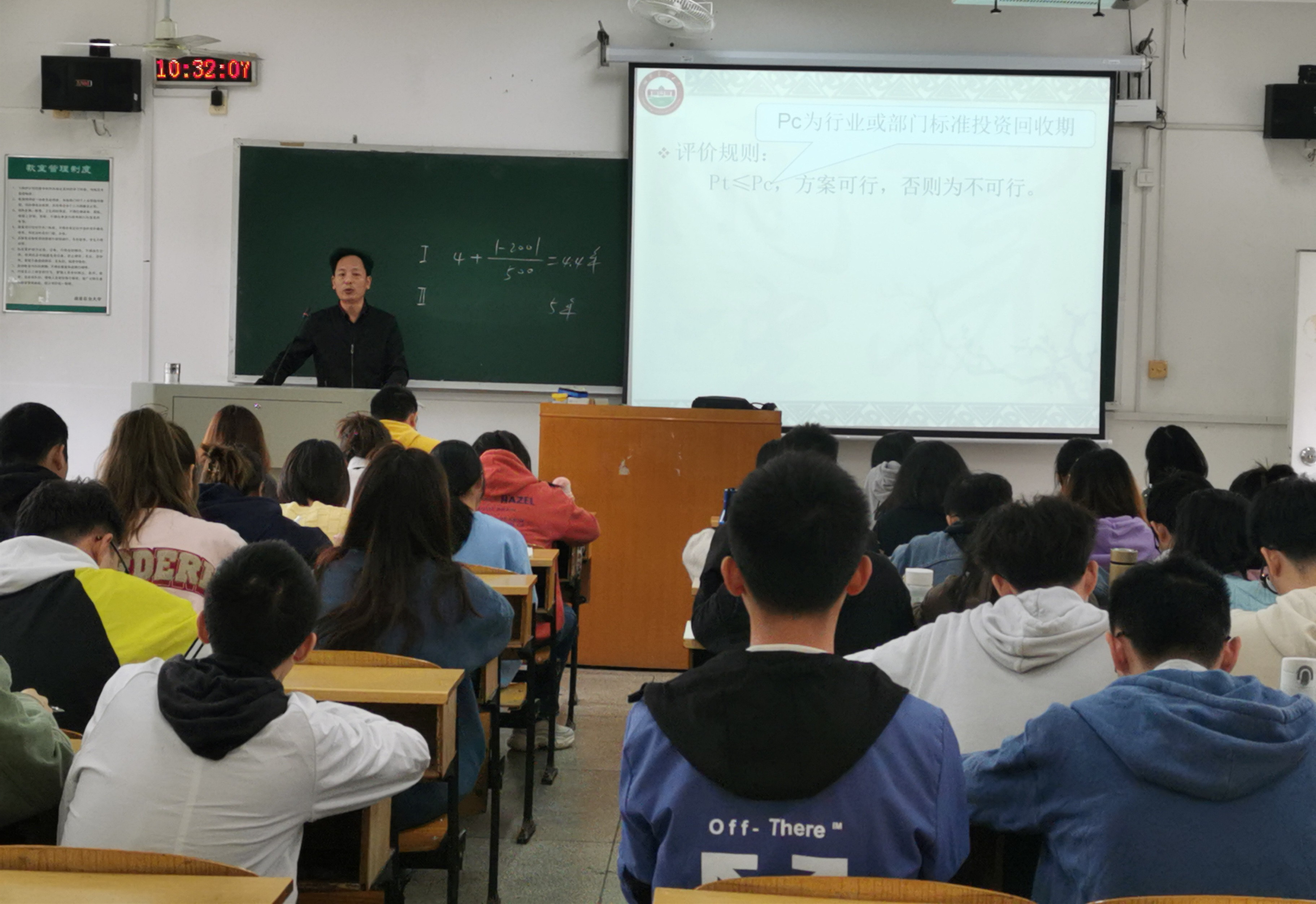 李明孝老师主要就《工程经济学》中的“工程经济评价的基本方法”部分进行示范教学。他精神饱满、节凑稳健、逻辑严谨、思路清晰,教学重难点突出,深入浅出,充分体现了其驾驭课堂的超强能力与授课风范。上课期间,员工到课率、抬头率和点头率均保持了较高水平,师生互动多,氛围深厚,充分调动了同学们的学习积极性,教学效果比较突出。