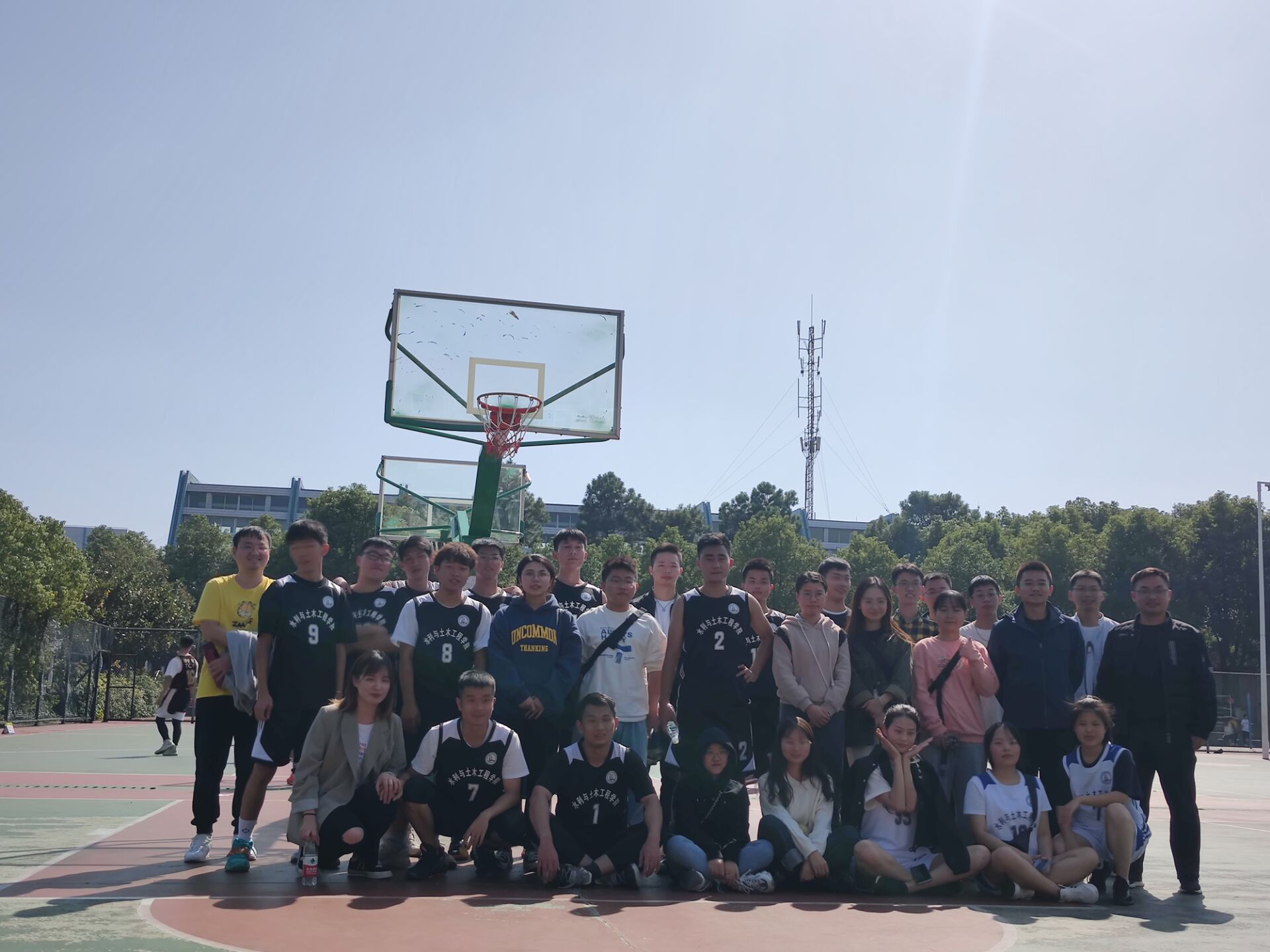 公司男队对战商公司。比赛开始,身着黑色球衣的水利土木公司队员表现出强烈的取胜欲望。上半场,他们通过远距传球,精准投篮,赢得现场观众的阵阵欢呼。下半场,公司球队及时总结经验,调整战术,全力追赶,最终将比分定格在17:45。