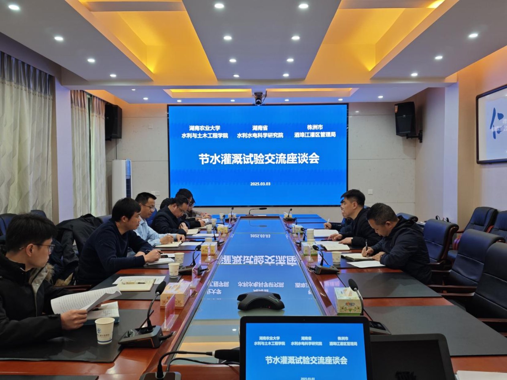 座谈会上,周海军局长详细介绍了酒埠江灌区作为湖南省改革试点的创新实践,重点分享了三方面经验:一是探索市场化水权交易机制,优化水资源配置效率;二是深化农业水价综合改革,构建可持续节水激励机制;三是通过技术创新提升灌溉水利用系数,推动节水增效。他表示,灌区亟需高校与科研机构的技术支撑与理论指导,期待三方在项目攻关、成果转化及人才培养等领域深化合作,打造现代化灌区样板。