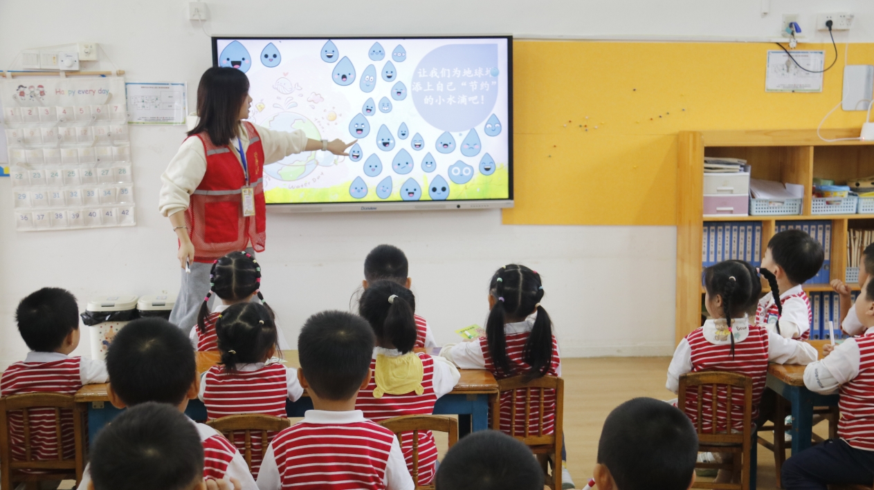 活动伊始,志愿者以“濒临枯萎的花朵需何种力量重焕生机”的提问拉开序幕,配合实物展示引导幼儿直观感知水的重要性,并搭配图文卡片讲解水资源常识,将抽象的节水理念转化为具体认知,唤醒孩子们对“水 的关注。