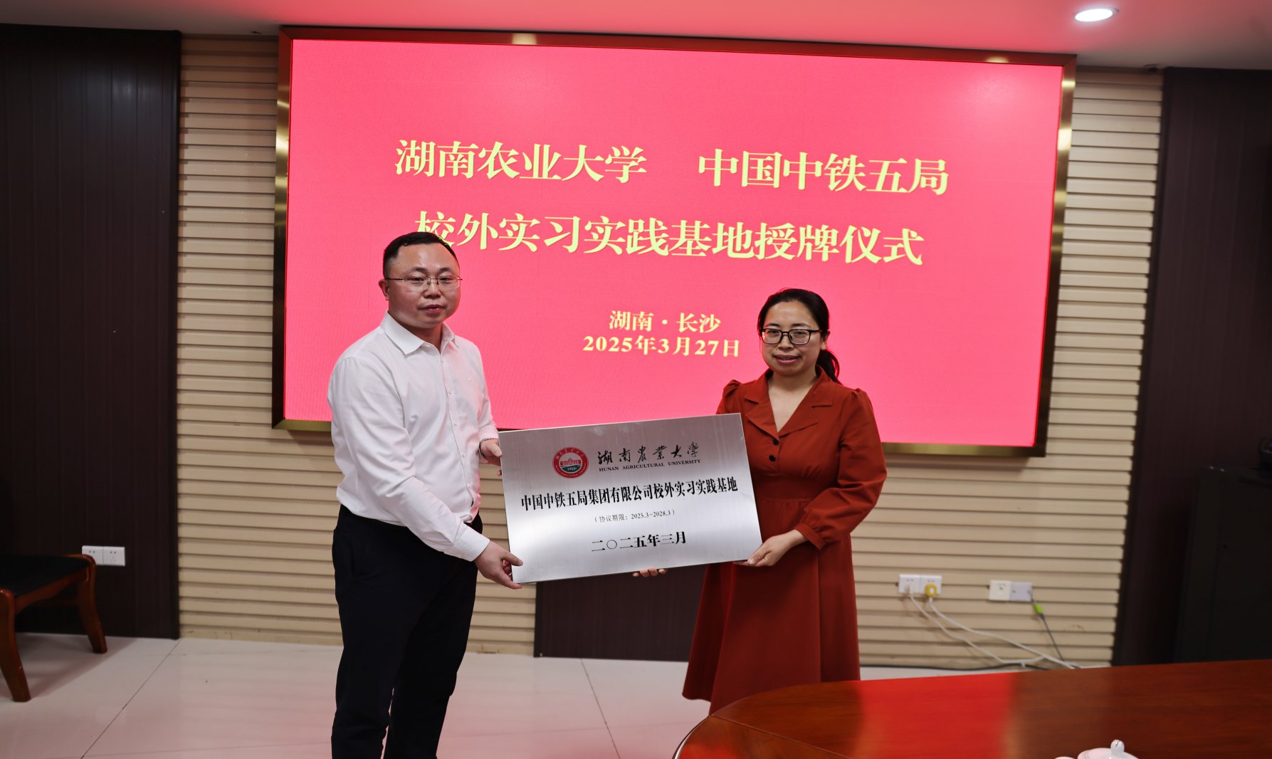 活动现场,中铁五局五公司党委书记与beats365副经理肖卫华共同为“校外实习实践基地”授牌,标志着校企实践育人平台正式落地。